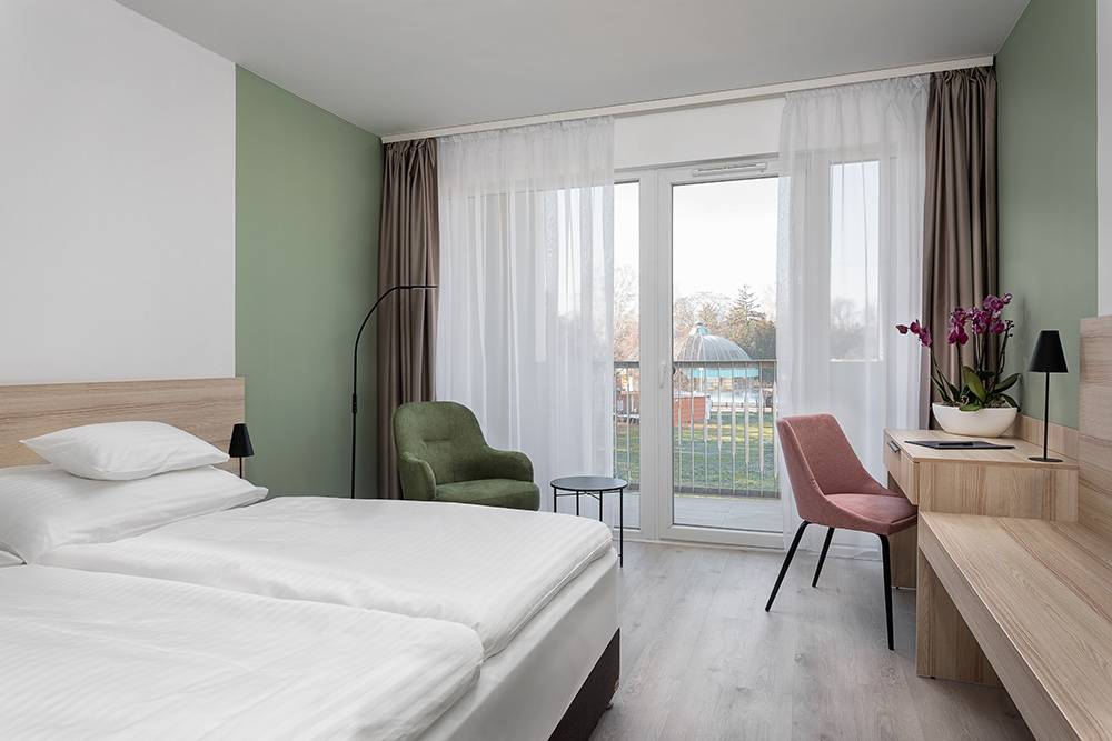 Our hotel is located in the centre of the city centre, in the immediate vicinity of the thermal springs and the city beach, which is accessible free of charge to our guests through the hotel.