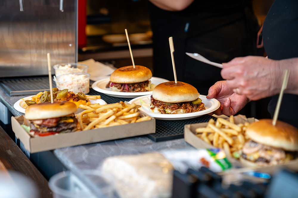 - Bacon Burger, Cheeseburger, Burrata Bomb, Bacon Cheese Fries, Coleslaw (mayonnaise cabbage salad)