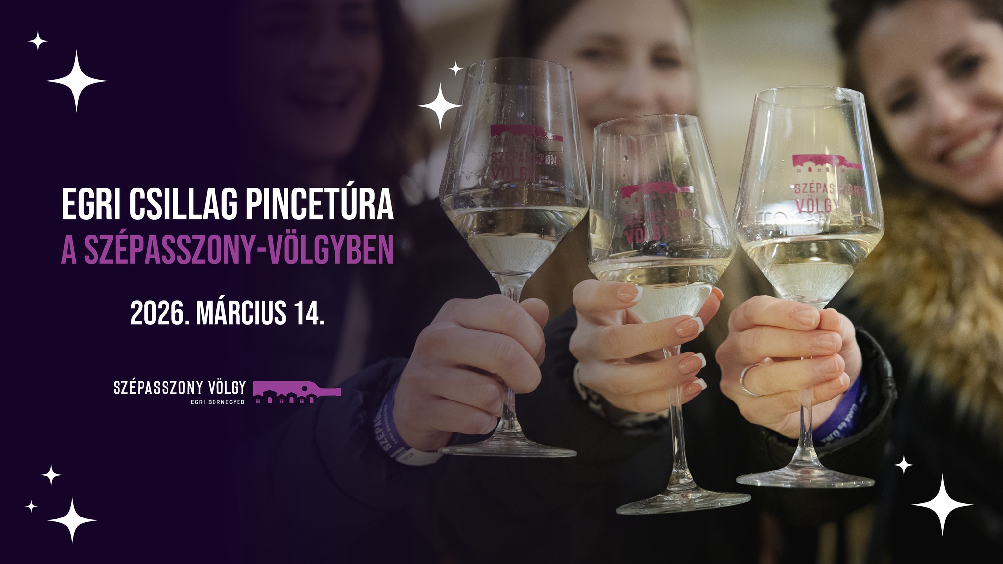 Included in the price: 1 unique glass branded with the Egri Bornegyed logo, 1 wristband, and 1 route card entitling you to participate in the Szépasszony-völgy cellar tour, where you can taste 1 wine from each of the 9 wineries and enjoy specially prepared dishes at the purple-flag restaurants.