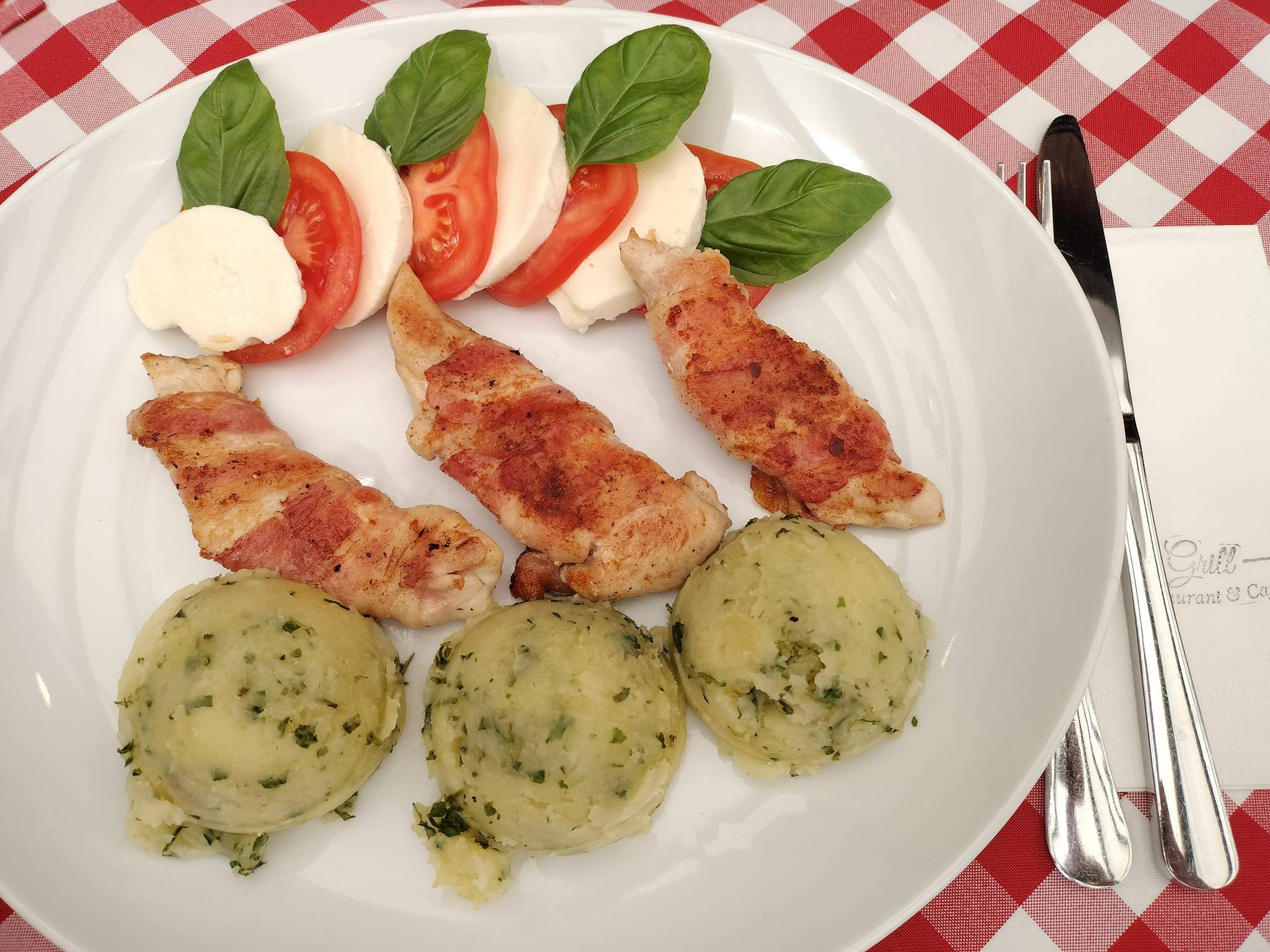 - Beef tenderloin steak with foie gras, brown sauce, and parmesan roasted potatoes
