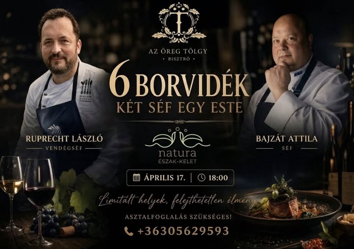 Április 17-én valami igazán különleges történik Az Öreg Tölgy Bisztróban: 6 borvidék, két séf, egy este.