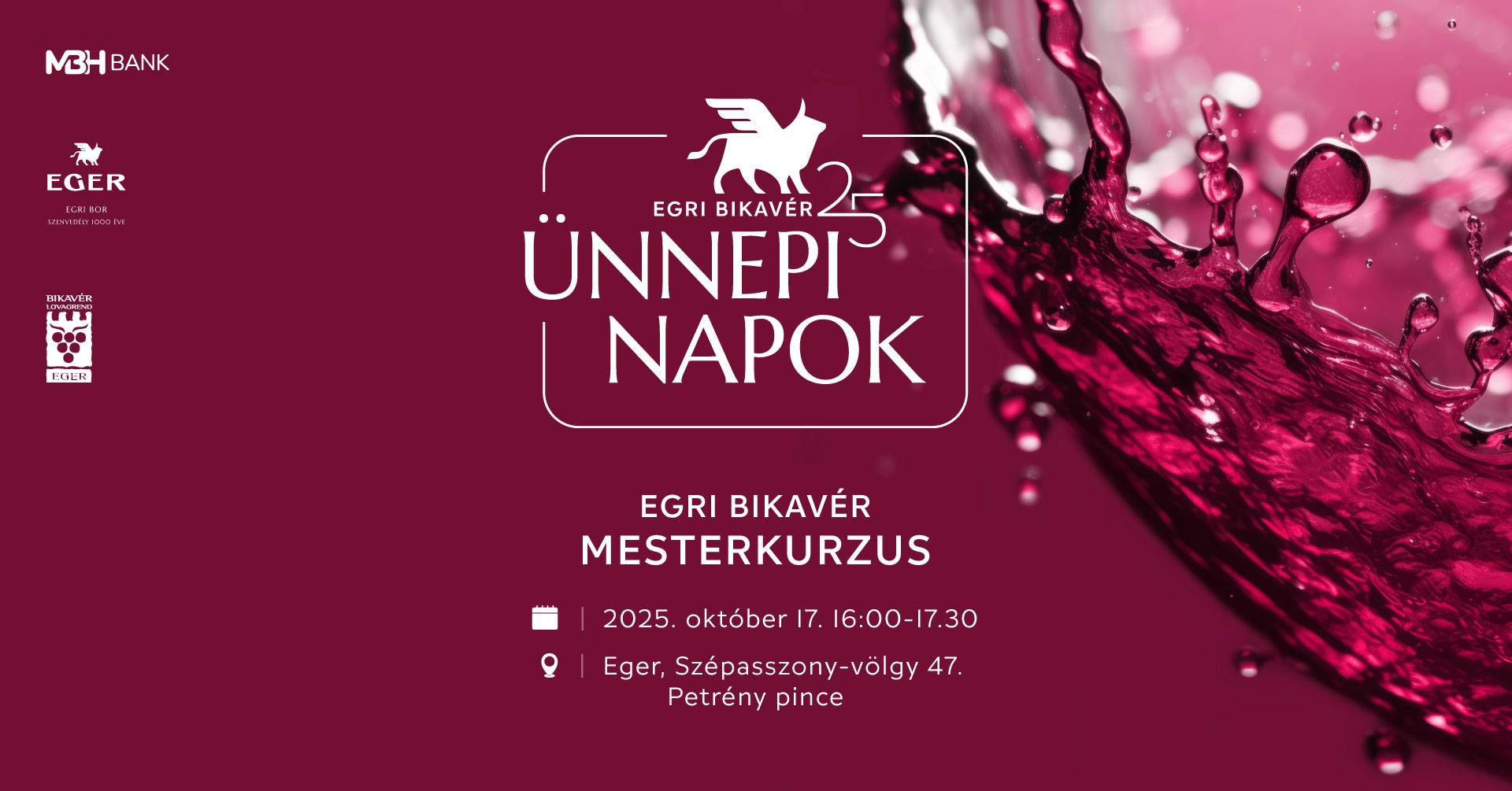 Az Egri Bikavér Nagykóstolóra jegyet vásárolt résztvevőknek lehetőségük van díjmentesen regisztrálni a mesterkurzusra, melyen díjnyertes Egri Bikavérek kóstolójával és neves előadók gondolataival gazdagodhatnak. A kurzusra meghívást kapnak ismert és elismert vendégek is, akik interaktívvá teszik a programélményt.