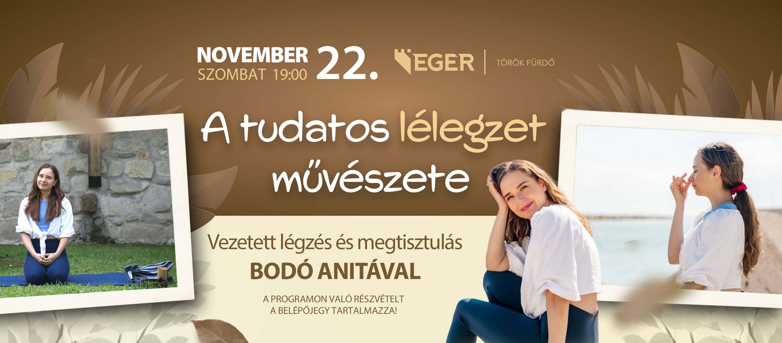 Egy órás különleges programunkon Bodó Anita vezetésével megtapasztalhatod a tudatos légzés jótékony hatásait: a feszültség oldását, a stressz elengedését és a belső egyensúly visszanyerését.