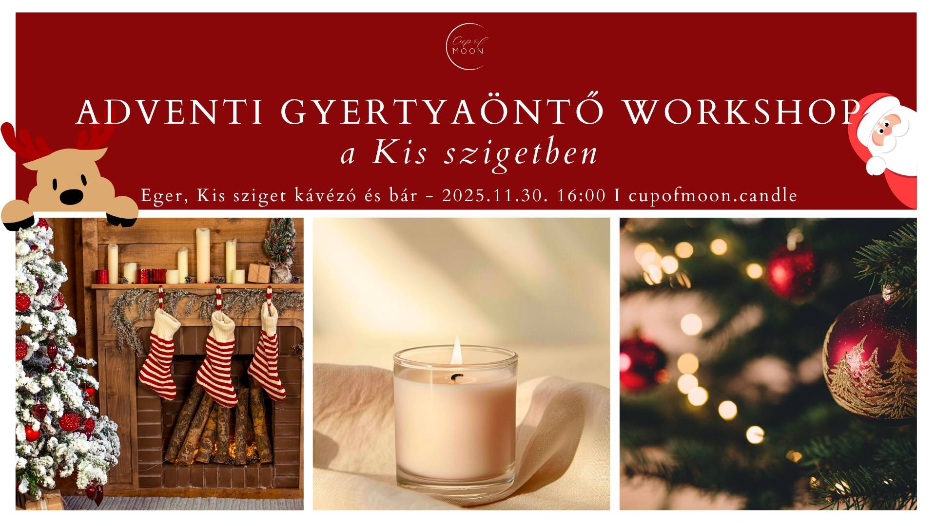 Gyere el a Kis szigetbe, hangolódjunk együtt az adventi időszakra egy meghitt, kuckózós délutánnal, ahol megismerkedhetsz a szójaviasz gyertyakészítés alapjaival és saját, egyedi illatgyertyát és illatviaszt alkothatsz, miközben egy meleg, forró italt kortyolgathatsz!
