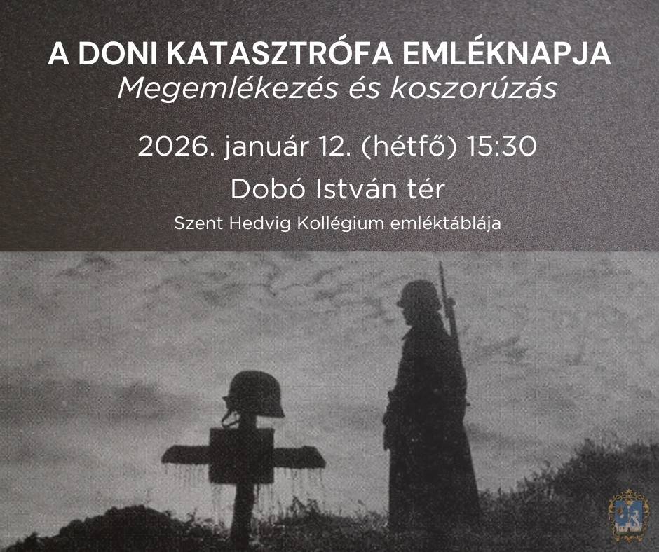 Eger Megyei Jogú Város Önkormányzata megemlékezést és koszorúzást rendez a doni katasztrófa emléknapja alkalmából a Dobó István téri Szent Hedvig Kollégium falán található emléktáblánál, 2026. január 12-én, hétfőn, 15.30 órai kezdettel.