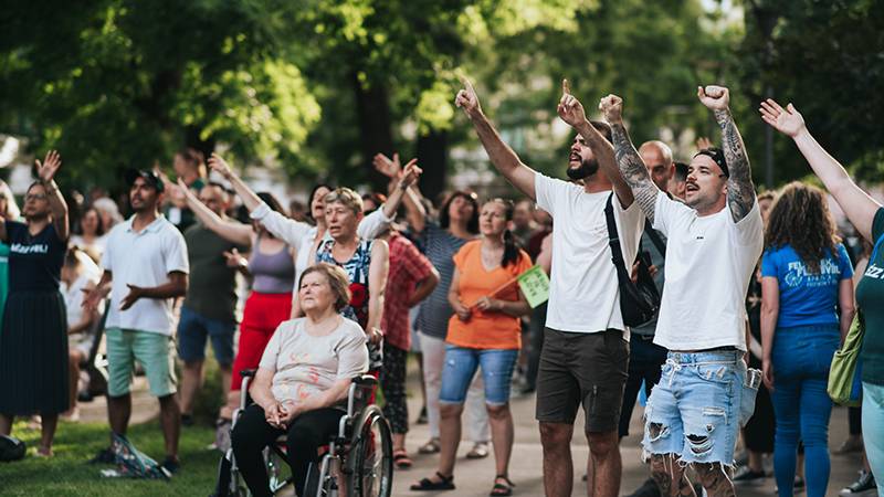2026-ban is egy felekezetközi evangelizáció megvalósításán dolgozunk, aminek a célja, hogy több száz evangélista menjen ki különböző városok főbb csomópontjaira, bolygassuk fel a várost, hirdessük az örömhírt, és hívjunk meg személyesen minél több embert a hétvégi fesztiválra.