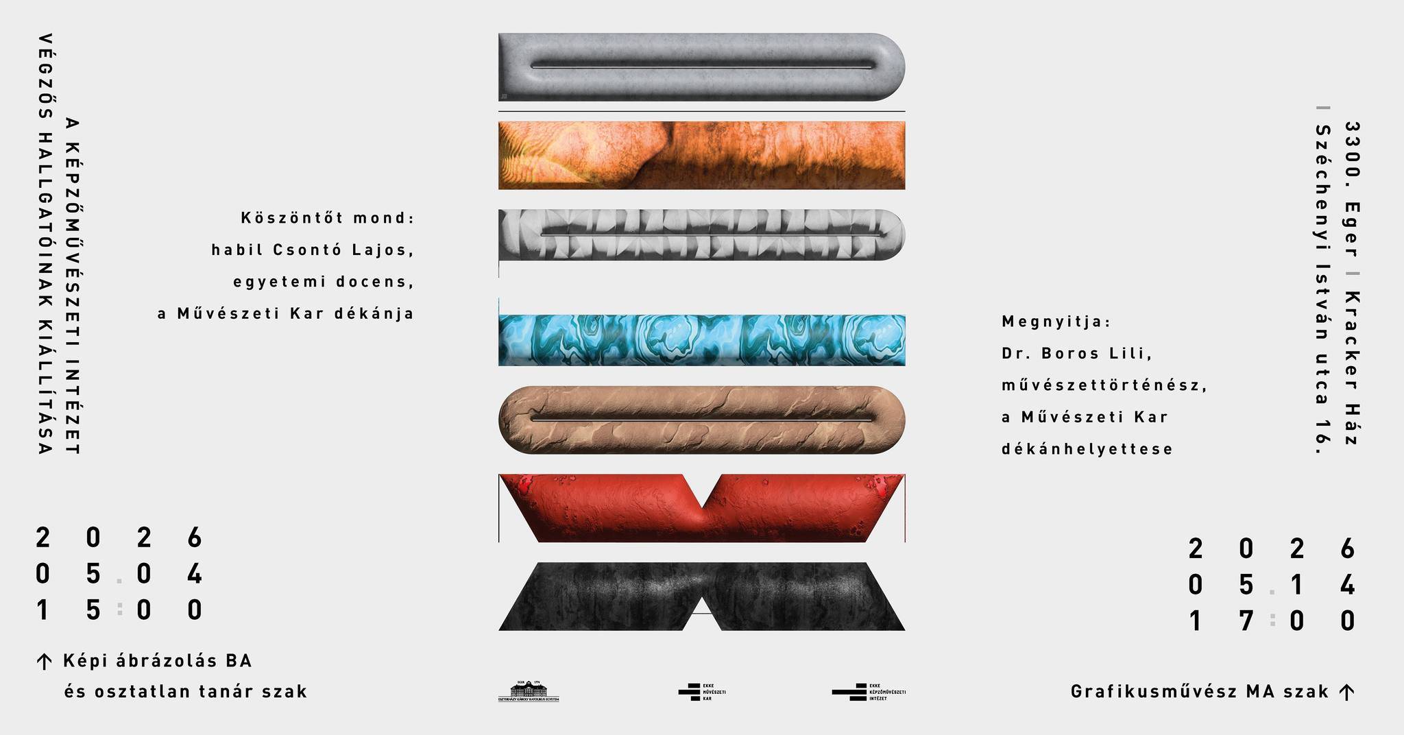 Az Eszterházy Károly Katolikus Egyetem képi ábrázolás BA, valamint vizuáliskultúra osztatlan tanár szakos hallgatóinak diplomakiállítása.