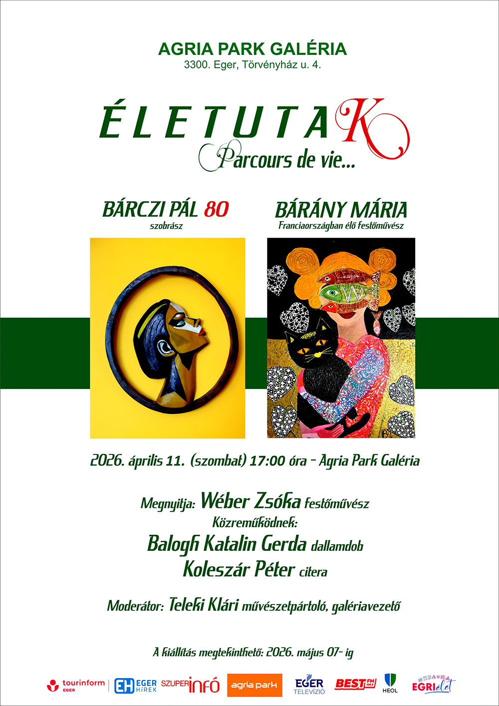 A kiállítás ingyenesen megtekinthető 2026. május 07-ig az Agria Park Galériában.
