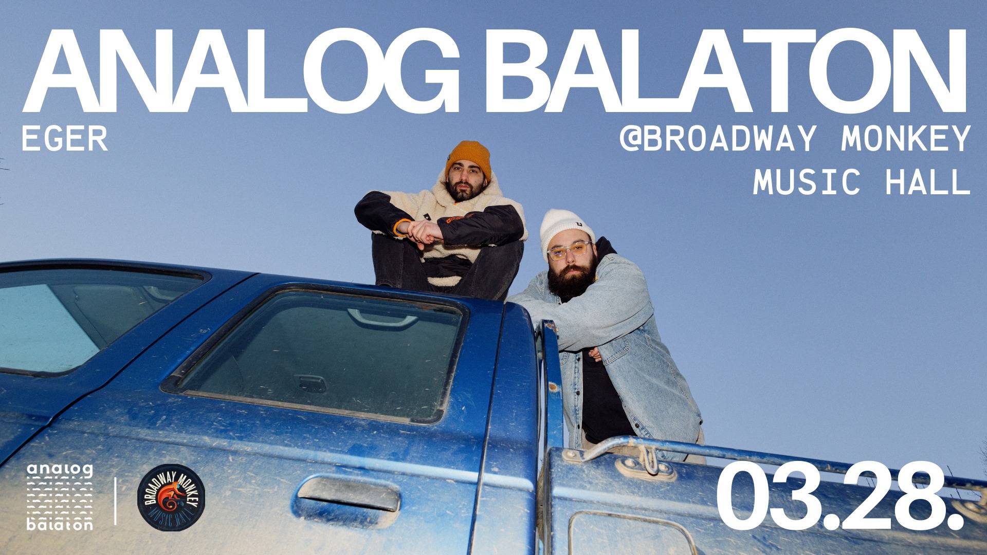 Zsuffa Aba és Vörös Ákos duója, vagyis az Analog Balaton 2017-ben alakult Budapesten. Az ország egyik legizgalmasabb zenekaraként tartják őket számon, illetve felléptek a Bonobo, a Weval és a Bob Moses előzenekaraként is. A formáció hangzása már a kezdetek óta az akusztikus gitárzenére, és a sötétebb tónusú, lüktető elektronikára épül. Karrierjük alakulása több szempontból is különleges. Még nem voltak felvett dalaik, amikor már telt házas live-act bulikat adtak szerte az országban. A hazai underground körökből egyre inkább előretörő Analog Balaton végül 2021-ben jelentette meg első nagylemezét. A kilenc számos ’Lent’ című anyag hű maradt a kezdeti improvizatív jellegű, monoton elektronikához, úgy, hogy közben már nagyon erős szöveg centrikusság jellemzi. A lemez szétcsúszott esték, bágyadt reggelek, és magányos szomorkodások története, az őszinte sorok pedig azonnal betaláltak, a ’Lent’ a szakma és a közönség körében is osztatlan sikert aratott. Az album szinte teltház előtt debütált az Akvárium Nagy Hallban, az a38 hajós koncertjükre pedig már jóval a meghirdetett dátum előtt elfogyott az összes jegy. 2022-ben már nem volt fesztivál Analog Balaton nélkül, ugyanebben az évben pedig már landolt is a következő kislemezük a ’Csússz le’ rajta olyan közreműködőkkel, mint Szendrői Csaba (Elefánt) vagy 6363 (Gege).Szintén ebben az évbenPetőfi Zenei Díjátadón az Év Elektronikus Előadója díjat is elnyerték, amellyel méltó elismerést kaptak az elektronikus zenei színtéren végzett kiemelkedő munkájukért. Zsuffa Aba és Vörös Ákos 2023-ban sem lassított, az országjáró turnéjukat követően felléptek az ország legnagyobb szabadtéri szórakozóhelyén, a Budapest Parkban, szerepeltek Hajós András Dalfutár c. műsorában, év végén pedig elnyerték a Music Hungary Showtime-díját, megfejelve mindezt egy dupla teltházas Akvárium Nagyhall koncerttel. Azóta megjelent a Repedés című album, amelyet teltházas lemezbemutató követett a Barba Negrában. Az évet pedig dupla teltházas koncerttel zárták a Magyar Zene Házában. A 2025-ös év is izgalmas volt az Analog Balaton duójának, akik nemcsak a Budapest Parkban, hanem a legnagyobb fesztiválokon is aktívan szerepeltek, miközben új hangzásokat és érzéseket hoztak el a közönségüknek.