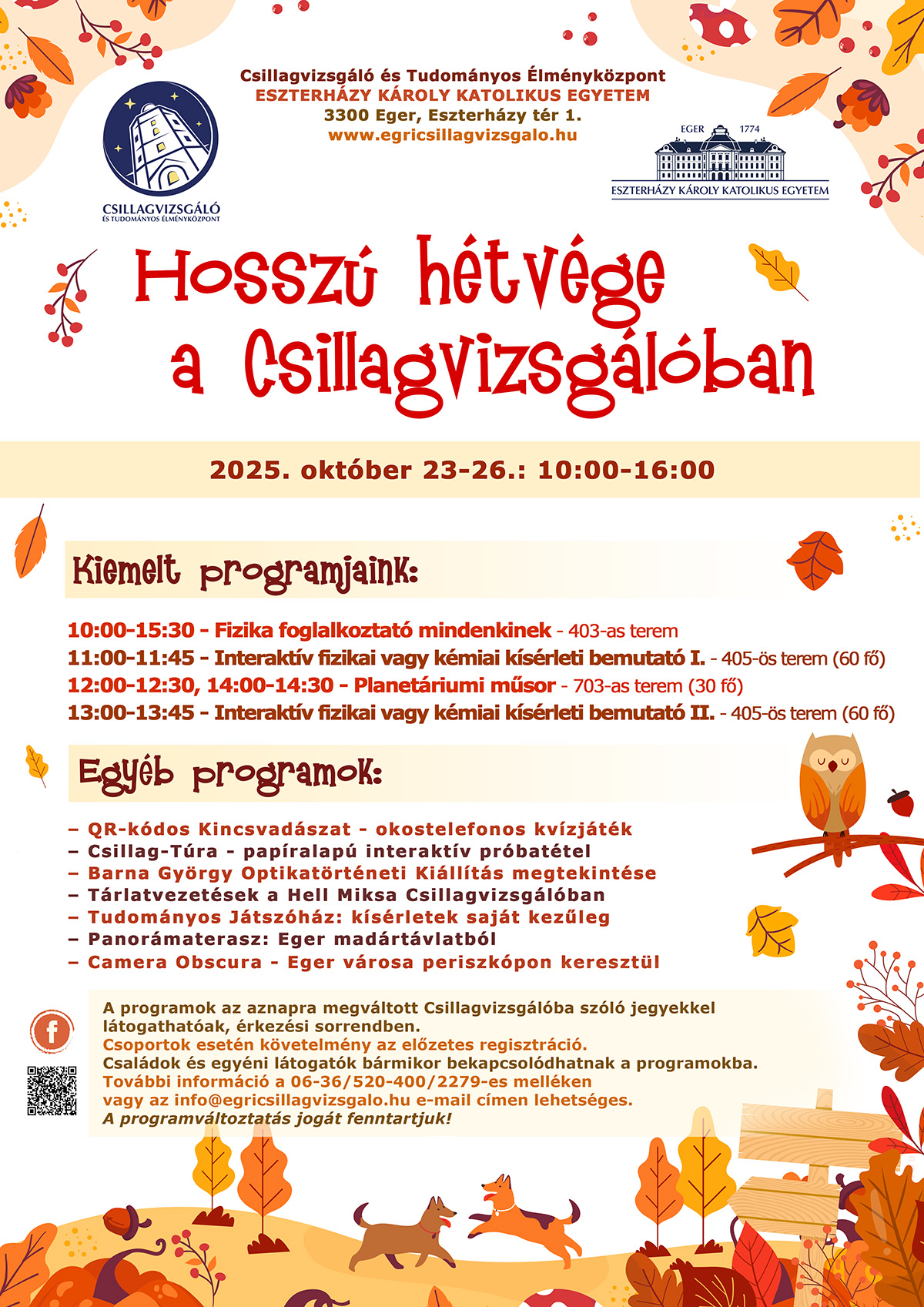 Töltsék a hosszú hétvégét természettudományokkal a Csillagvizsgálóban!