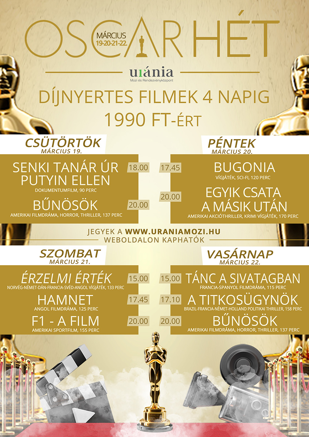 - az uraniamozi.hu oldalon és az első vetítés előtt 1 órával a helyszínen.