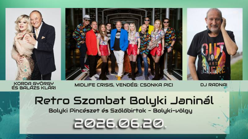 Készülj fel az év egyik leghangulatosabb nyári estéjére! 2026. június 20-án a lenyűgöző egri Bolyki-völgy sziklafalai között visszarepülünk az időben. A Bolyki Pincészet és Szőlőbirtok nemcsak kiváló borairól híres, hanem legendás bulijairól is – most pedig egy igazi Retro Szombattal várunk Titeket!
