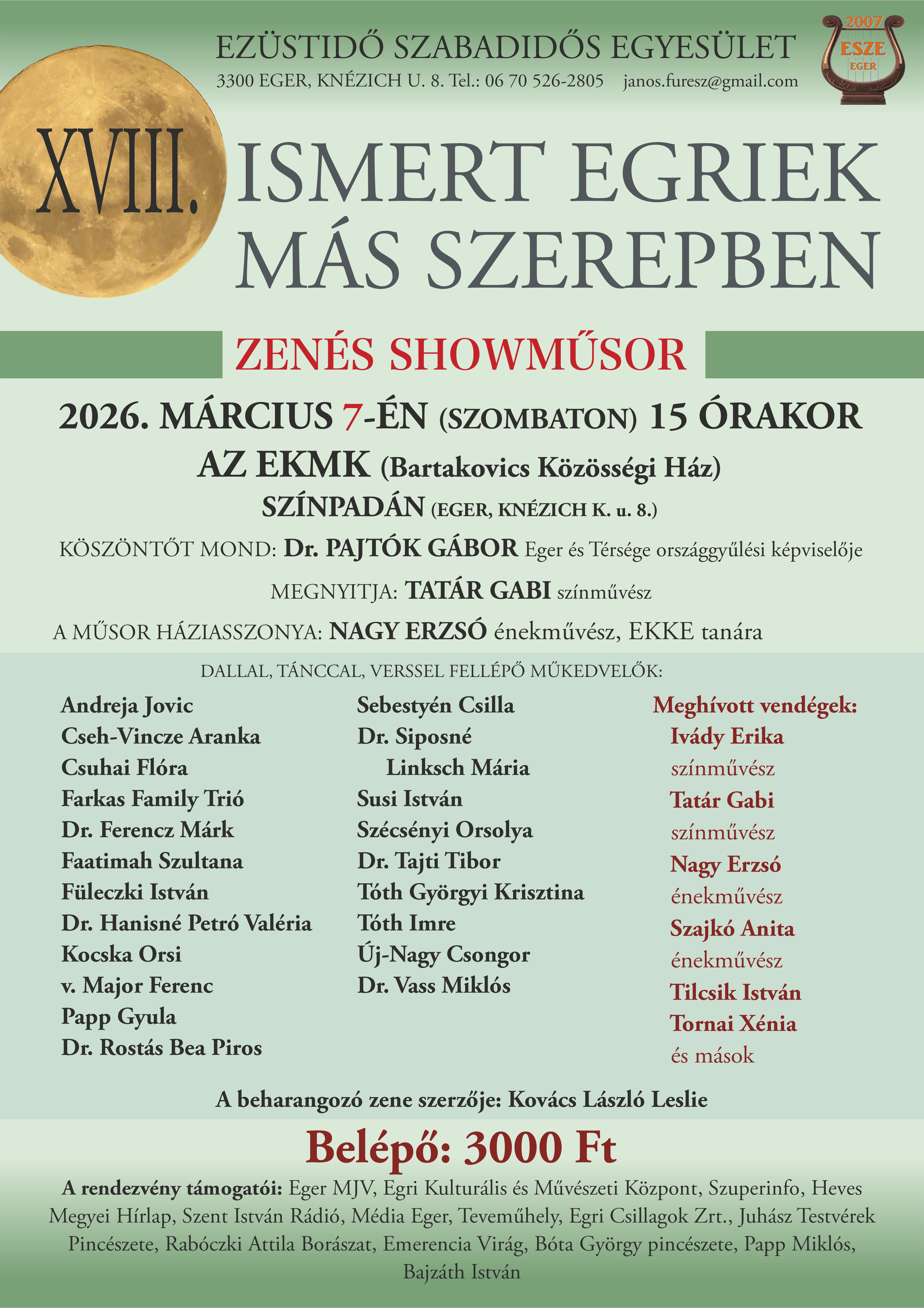 Egri műkedvelő talentumok és vendégművészek lépnek fel dallal, zenével, tánccal, verssel és mesével.