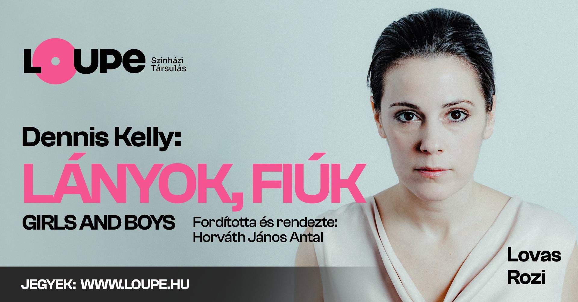Dennis Kelly-vel az Árvák után már másodszorra fuzionál a csapat. Az eredeti címén Girls&Boys című darabot 2018-ban mutatták be Londonban, majd bejárta az egész világot. A díjnyertes angol drámaíró erős, háromdimenziós női karakterre írt történetét most az ország egyik legismertebb és legsokoldalúbb színésznője, Lovas Rozi előadásában láthatják a magyar nézők.
