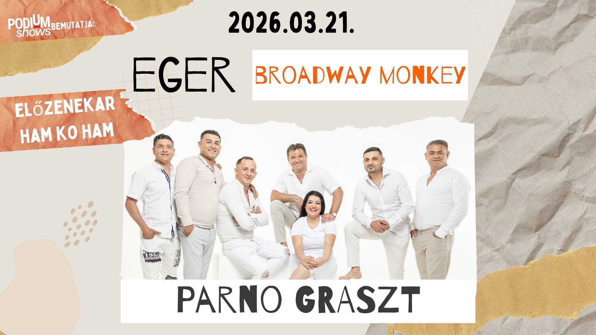 A Parno Graszt hatalmas energiával érkezik, hogy fehér lován vágtatva az Eger Broadway Monkey színpadára hozza a hamisítatlan cigányzene varázsát.